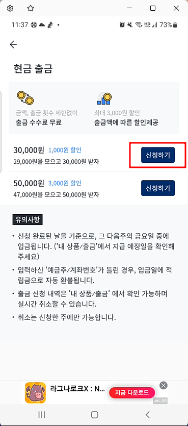 저는 5개월 정도 모았는데 출금하려면 5개월 정도 더 모아야 겠네요.... 지금까지 1만 5천원 정도 모았어요~ ㅠㅠ