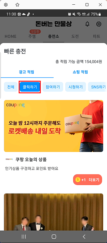 클릭만 해도 1포인트가 적립되는 광고로 주로 포인트를 적립하고 있습니다.
