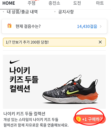 매일 5천보 이상 10일 걸으면 보너스 200원이 추가 적립되고 1일 만보 걸으면 추천을 통해 200원 적립됩니다.